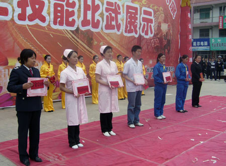 为隆重纪念“五一”国际劳动节,贯彻落实全国总工会提出的“当好主力军,建工十一五,和谐奔小康”主题竞赛活动精神,激发每一位劳动者的工作积极性和创造性,推动经济社会又好又快发展。4月23日,由长武县劳动竞赛委员会主办、县总工会主板承办,县财政局、卫生局、教育局、文体局等部门的大力支持下,我县劳动技能大赛在南街广场拉下帷幕。